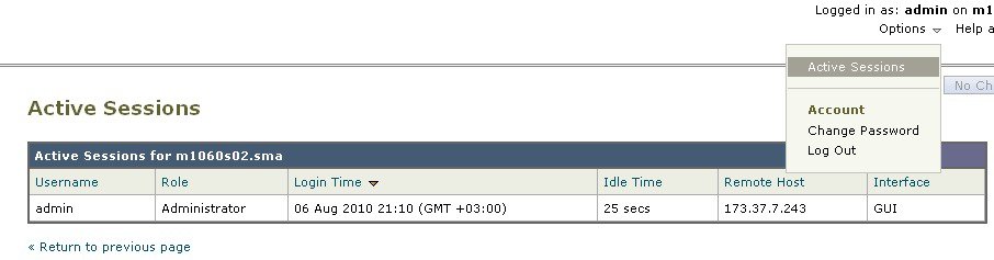 From the Security Management appliance, you can view all active sessions and users logged in to the appliance.